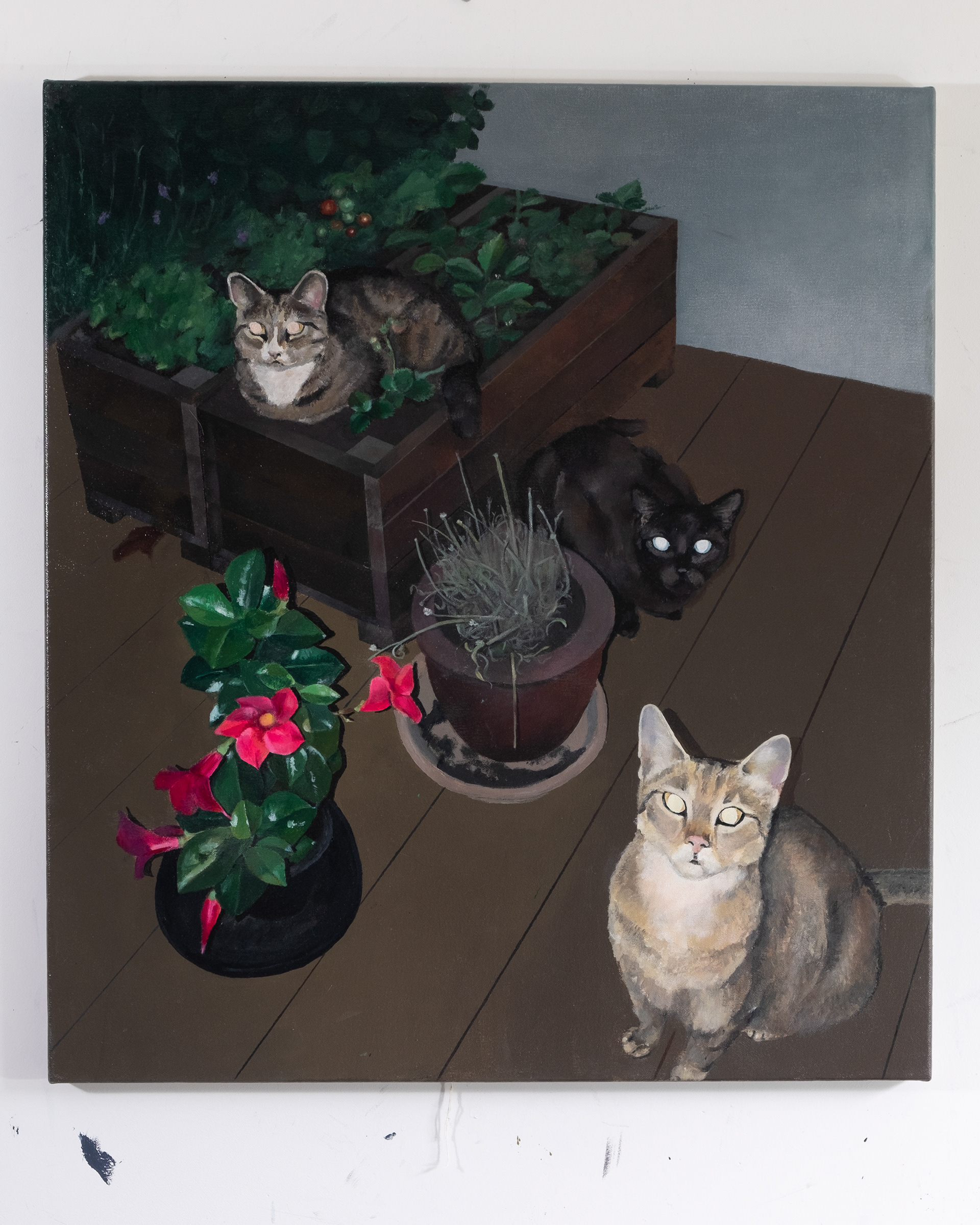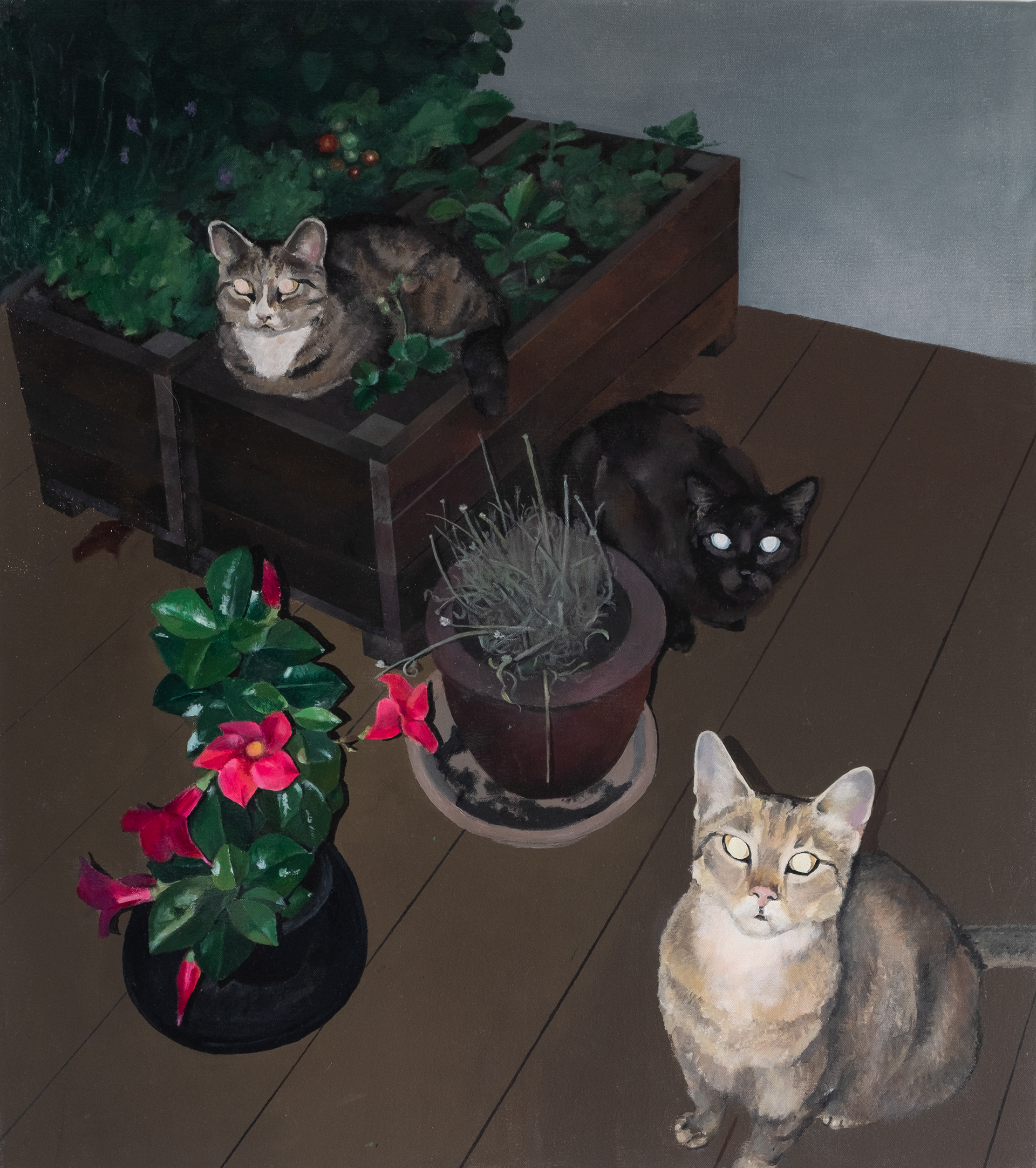 Cats on the Balcony 1, acrylics on canvas, 80 x 90 cm, 2023